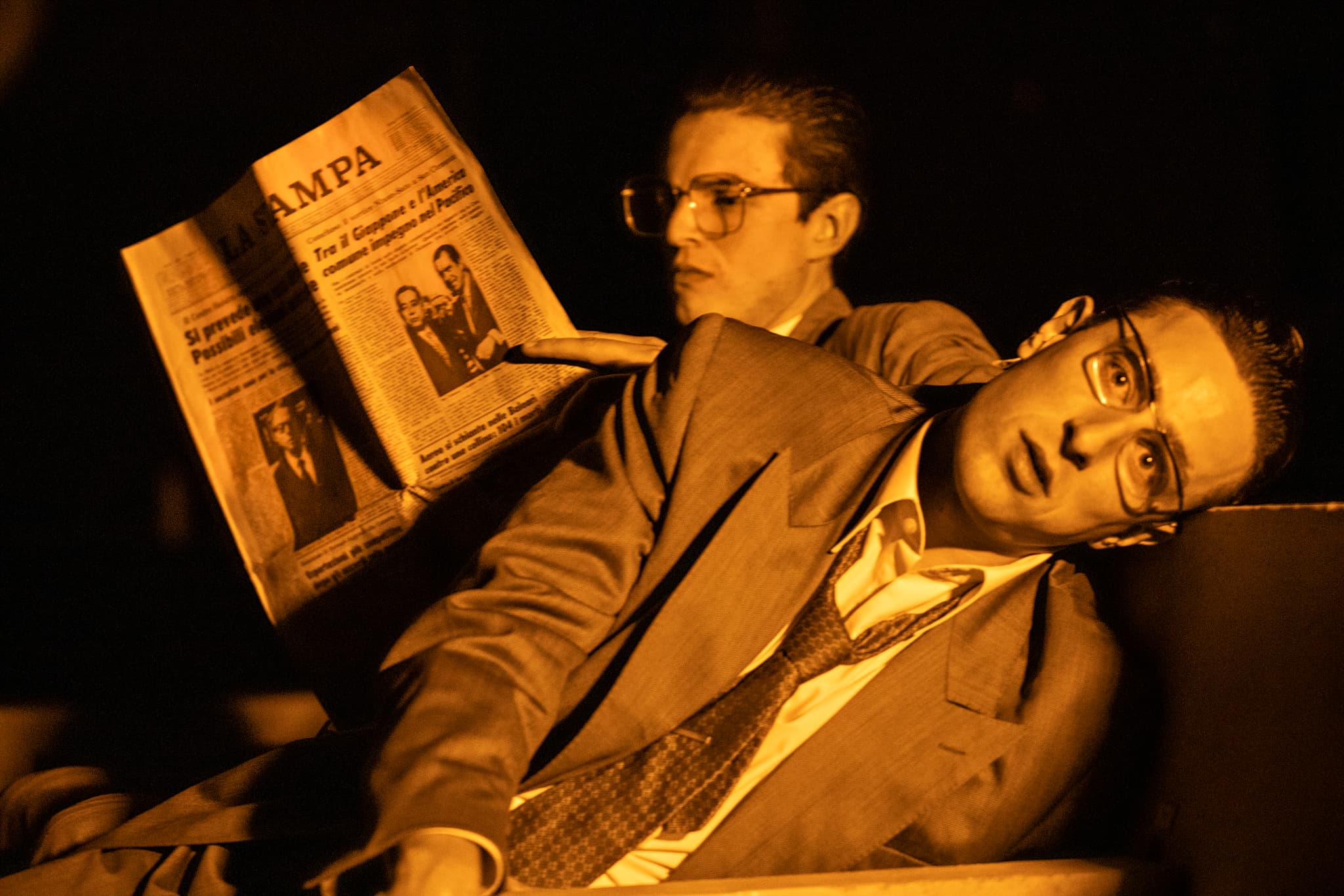 Il faudrait, un jour, faire l’histoire de cette obsession consistant à demander aux spectacles de « parler du présent », comme si le théâtre devait se justifier dans le bulletin d’information de ses actualités en temps réel. Quoi qu’il en soit, cette scène-là n’actualise rien : laisse plutôt l’actualité venir. Et elle arrive d’elle-même, par la géologie, par la structure, par les coordonnées politiques qui n’ont cessé de se répéter, depuis les années 70, avec la fidélité impitoyable des cauchemars. Les noms des politiciens italiens nous glissent entre les doigts, presque illisibles ou usés par l’air du temps ; mais la situation, elle, continue d’irradier à travers eux, intacte, presque neuve ; Pasolini avait parlé de nous en parlant d’hier. Voire : lisant Pasolini, on prend de nos nouvelles.